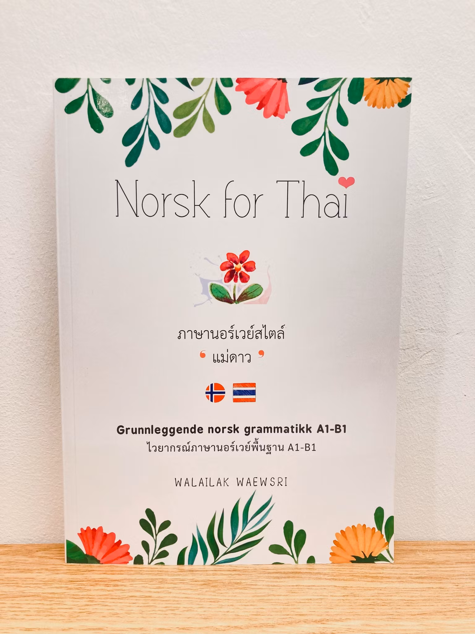 Boka er skrevet spesielt for thaispråklige som vil lære norsk. Innholdet er delt i tre hovedtemaer : ordklasser, setningsoppbygging og ordforråd. Det er mange setningseksempler og en del oppgaver for repetisjon. Ved hjelp av forklaring på thai er det lettere for lesere å forstå og ta i bruk ordbegrep.
